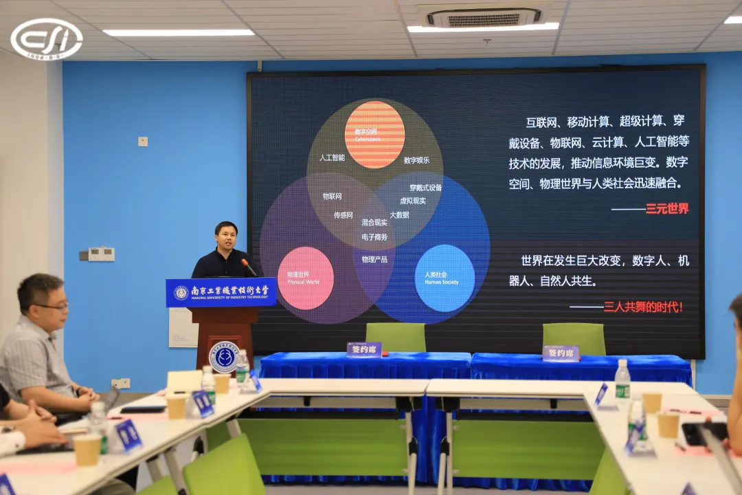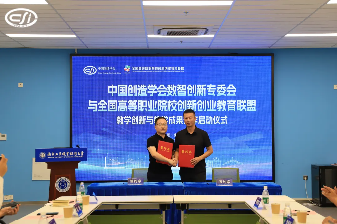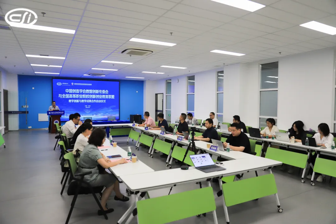 2025年9月7日,中国创造学会数智创新专业委员会(以下简称 “数创委”)与全国高等职业院校创新创业教育联盟(以下简称 “全国高职双创教育联盟”)教学创新与教学成果合作启动仪式,在南京工业职业技术大学双创大楼 210 会议室举行。来自全国高职双创教育联盟秘书处负责人、南京工业职业技术大学创新创业学院直属党支部书记、院长纪海波,广西电力职业技术学院院长助理、双创学院院长张海燕(广西分盟负责人),成都职业技术学院成都创业学院院长张丽娟(四川分盟负责人),哈尔滨职业技术大学创新创业学院院长荆雷(黑龙江分盟负责人),福建信息职业技术学院创新创业学院院长刘聃(福建分盟负责人),青海职业技术大学教务处副处长李晓龙(青海分盟负责人)等全国高职双创教育联盟代表,以及数创委副主任委员兼秘书长河北地质大学副教授朱燕空 ,数创委副主任委员、浙江大学教授张克俊,数创委副主任委员、智慧树同步课堂网事业部总经理李冬等数创委代表通过线上线下结合的方式参会,共同探讨职业院校教学创新以及教学成果的规划、培育与申报。合作仪式由南京工业职业技术大学创新创业学院直属党支部副书记、副院长黄继平教授主持。